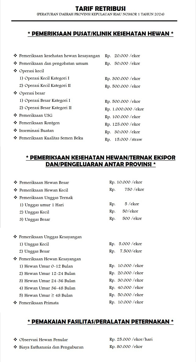 UPTD Balai Pelayanan Kesehatan Hewan Kesehatan Masyarakat Veteriner dan Klinik Hewan Provinsi Kepulauan Riau
